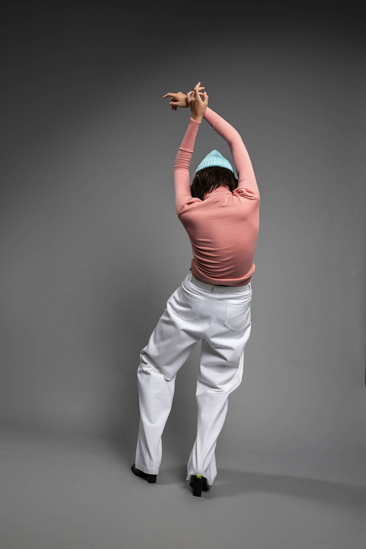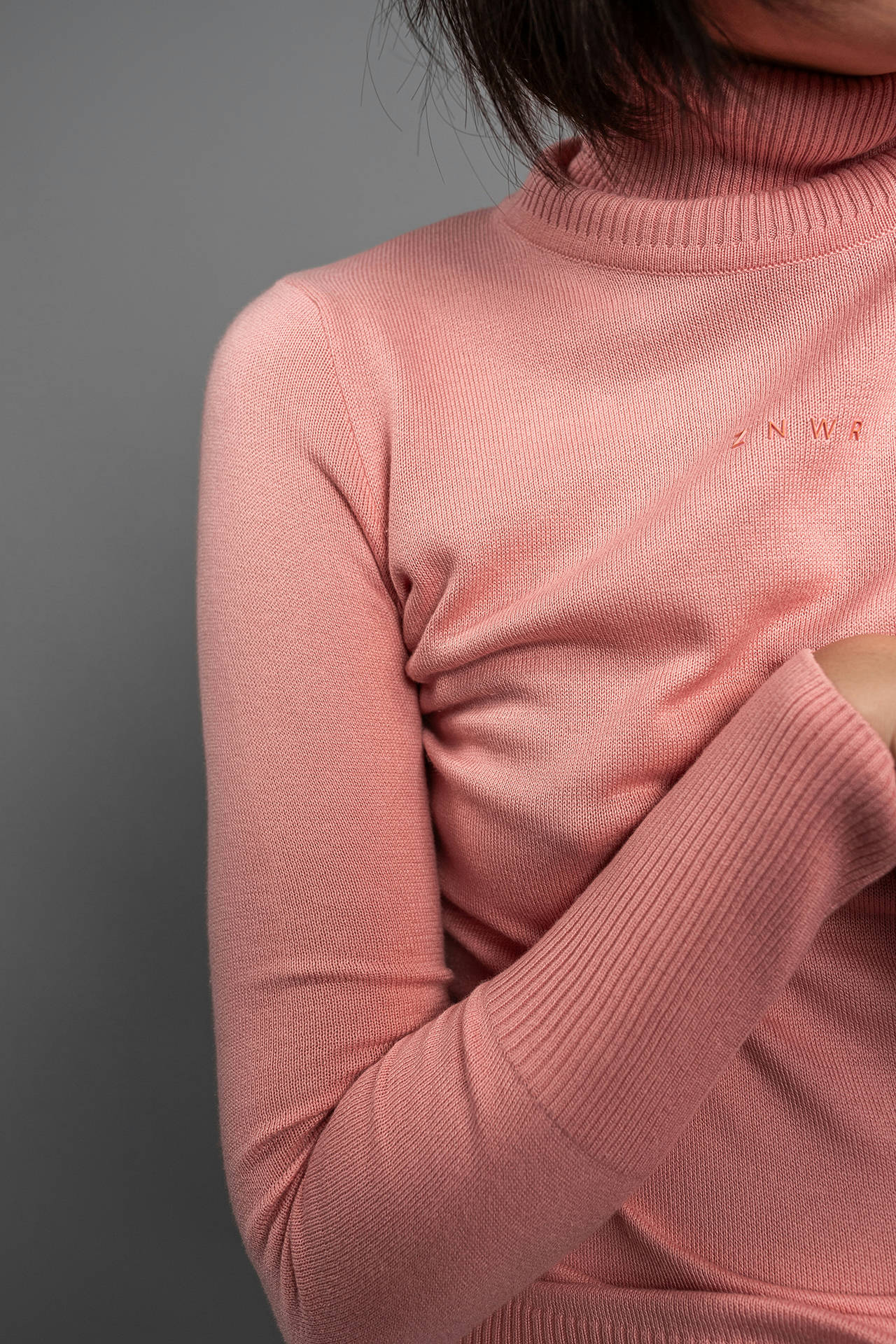 Женская водолазка из тонкого немецкого хлопка, нежно обнимающая запястья. Рукава с удлиненным манжетом, высокая стойка, объёмное каучуковое брендирование в цвет.