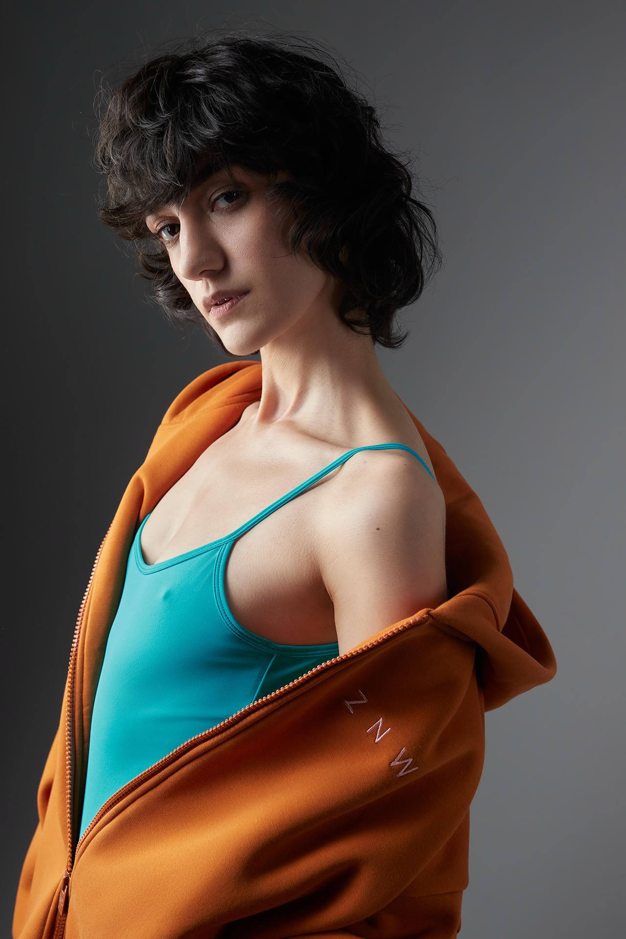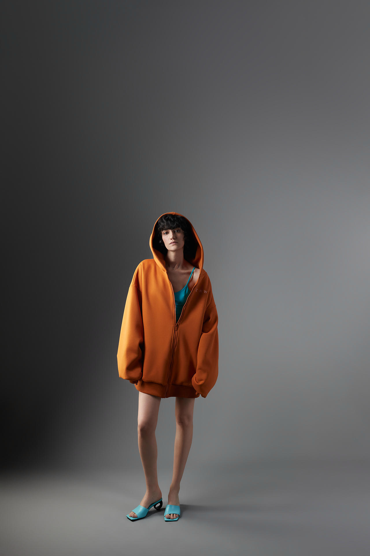 Худи на молнии, как возвращение к началу 1990-х, но в прочтении ZNWR — это большая, свободная форма, изнанку которой мы закрыли тонким хлопком и разместили греющий посыл от бренда.